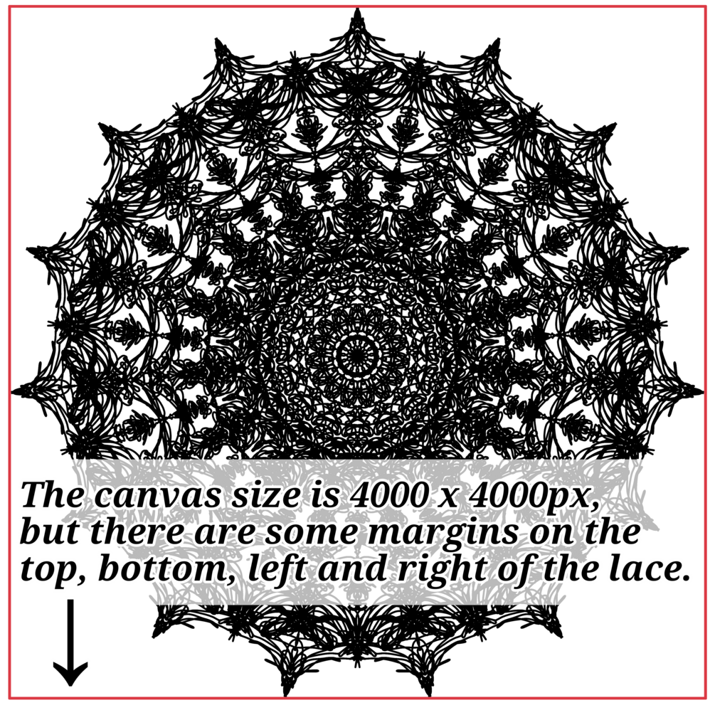 As shown in the sample image, there is a slight margin between the canvas size and the lace. Please refer to the sample image for details.